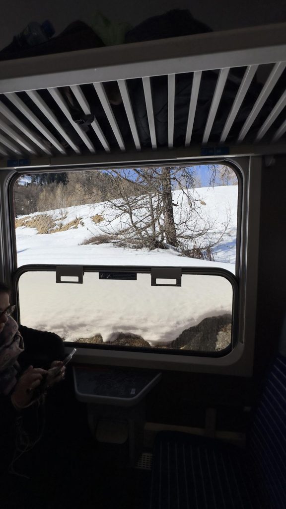 - ¿En qué época del año es mejor hacer esta ruta en tren?. Cada estación del año ofrece paisajes increíbles. En mi caso, que soy de El Puerto de Santa María (Cádiz) y vivo en Sevilla, no tengo la montaña muy a mano, así que me apetecía mucho ver el paisaje nevado, más aún si hablamos de las montañas de Suiza. La fecha que elegí fue finales de febrero. Me encontré un paisaje nevado, increíblemente precioso y no excesivo frío. Considero que fue una fecha perfecta.
