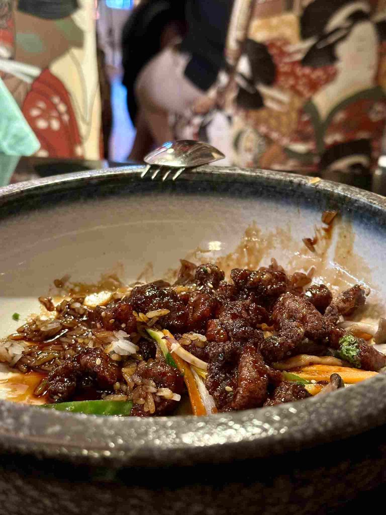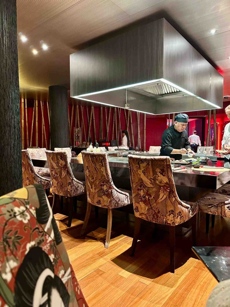 Tienen teppanyaki, lo que significa que cuando alguien del restaurante pide un plato de teppanyaki, el chef japonés sale de la cocina y te lo hace delante tuyo para que puedas verlo. Puedes reservar mesa alrededor de las planchas para verlo más cerca. Cierto es que puedes pasar un poco de calor y si vas a compartir plato tampoco te lo recomiendo. Siempre puedes decirle al camarero que te siente en una mesa frente a las planchas para verlo bien.