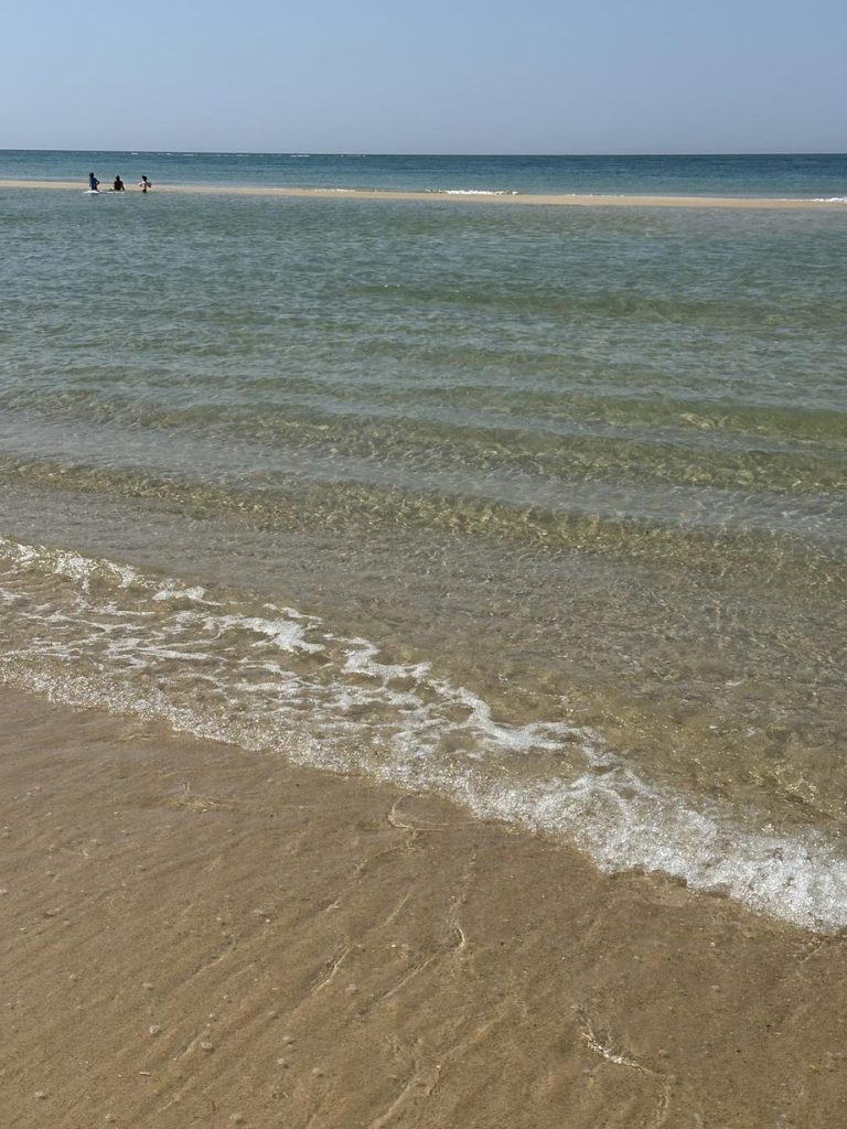 Si ves la playa en bajamar, se van a formar distintas «playitas» y podrás pasar de una a otra mediante los montículos de arena que se forman. Hay diferentes profundidades y el mar es cristalino. ¡¡Es el Caribe portugués!! Si no visitas la playa mas bonita del Algarve en bajamar, te vas a encontrar un playa como cualquier otra del Algarve y ojo con las corrientes que hay al bañarte, hay que hacerlo con mucha precaución, sobre todo si se bañan niños.
