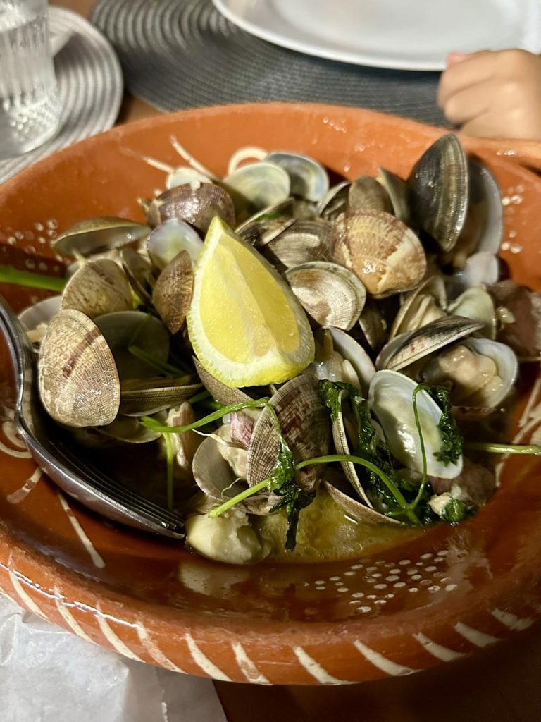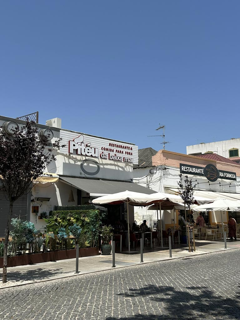 Desplázate hasta Olhão, si llegas a la hora de la comida, te recomiendo comer en Pitèu da baixa mar. Se encuentra en el paseo marítimo. Puedes dejar el coche aparcado cerca y entrar a comer aquí.
