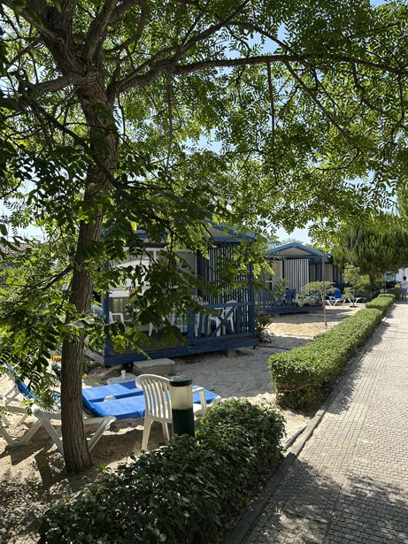 En la Isla de Armona se encuentra la playa mas bonita del Algarve y ahora te contaré por qué, así que te recomiendo te quedes a dormir allí. Sólo hay un camping llamado Orbitur, aunque te sugiero mires en Booking también si quieres reservar. Este camping es muy simple, los bungalows ya tienen unos años, no tienen aire acondicionado, solo un ventilador, pero si está bien equipado con nevera y utensilios de cocina. Ofrecen sabanas y toallas y las personas que lo regentan son muy agradables.