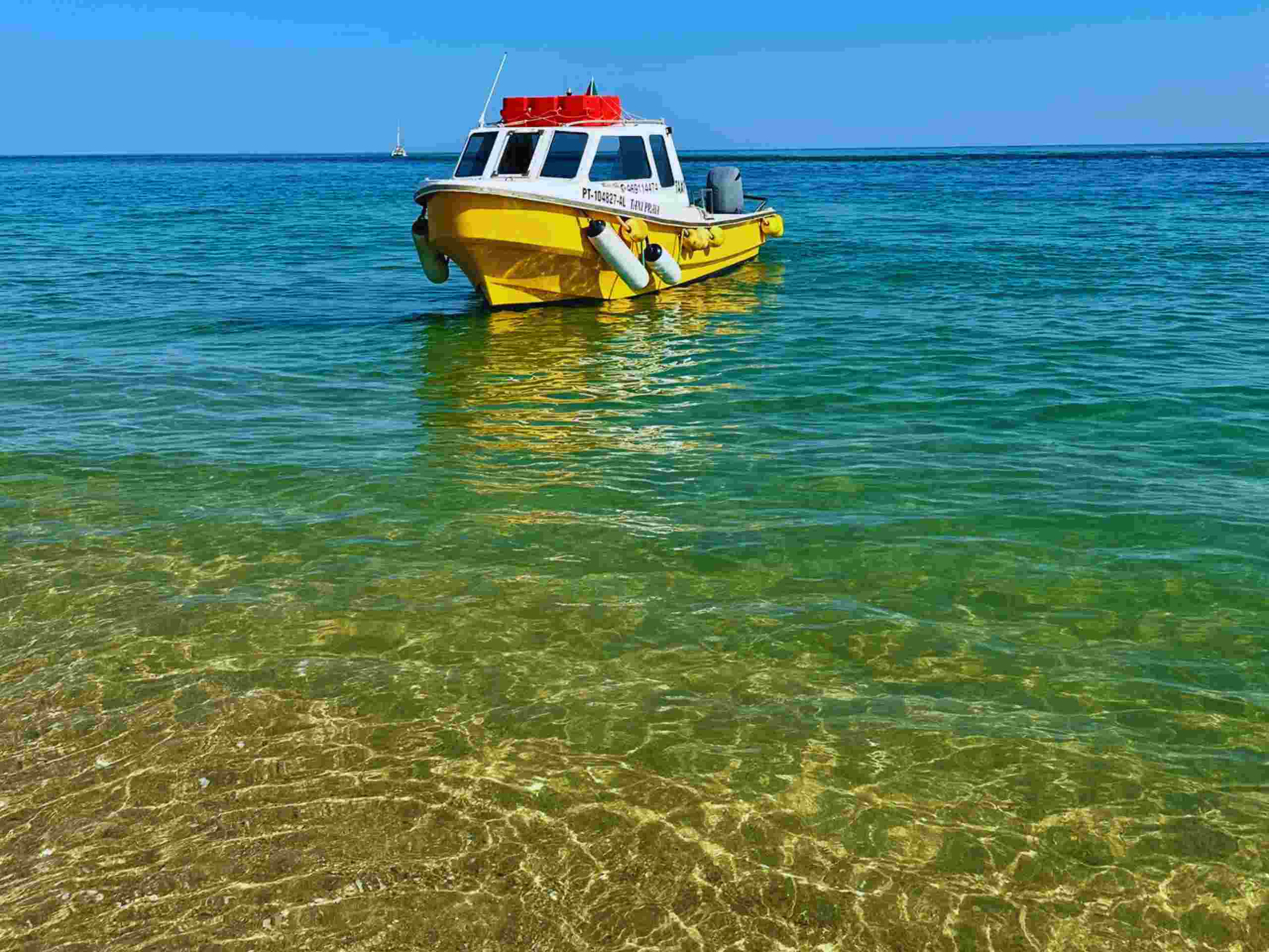 El muelle está justo enfrente del restaurante, ahí hay una caseta de madera donde compras los billetes. Hay ferrys cada hora y el precio es de 2.10€ adulto y 1€ el niño. Una vez tienes los billetes, esperas una cola señalizada con el nombre de la isla a la sombra, también hay algunos bancos donde puedes sentarte hasta que llegue el ferry. Puedes ir a echar el día o te quedas a dormir en la Isla de Armona.